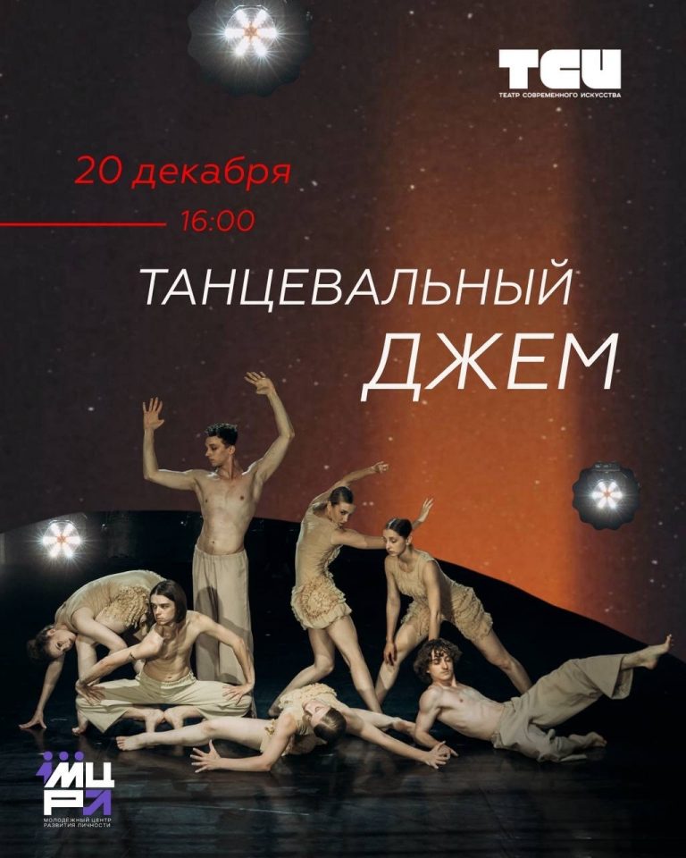 20 декабря в 16:00 в арт-резиденции «Дом книги» состоится культурно-массовое мероприятие «Танцевальный джем» с участием артистов Театра современного искусства: Алисы Артишевской, Ильи Шинкоренко, Артёма Сагалова, Полины Лазаревой, Русланы Ломаки, Вероники Щукиной, Кирилла Магутина, Надежды Масальской и Анатолия Яценко.
